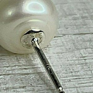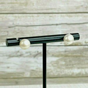 Button Pearl Pierced Post 925 Sterling Silver Earrings Signed TIL