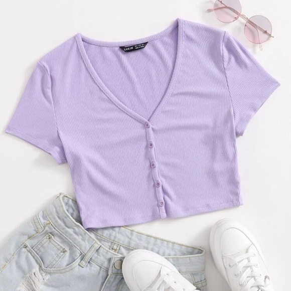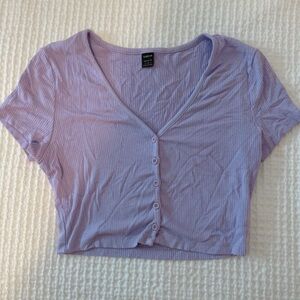 Shein ribbed lilac colored cropped button up short sleeve top. Worn once. Size small!