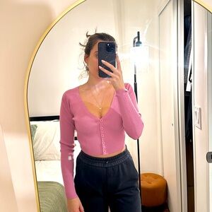 Button Ribbed Top in Pink