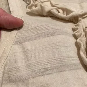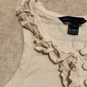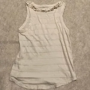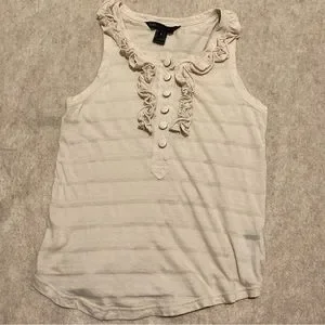 Cute burn out striped ruffle tank. Ruffles have a raw hem and there is a very small hole in the front as seen in the last photo