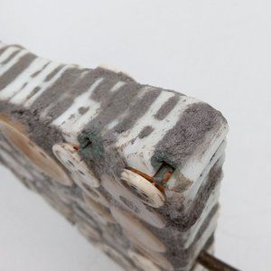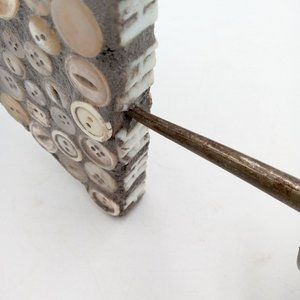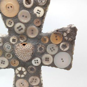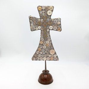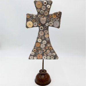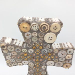Button Sculpture Folk Art OOAK Memory Jug Style Forget Me Not Assemblage Found
