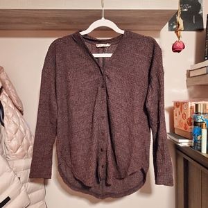 Deep purple, short button down cardigan. Soft and stretchy. Pink Rose tag from Charming Charlie. Used - Very Good/Like New