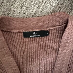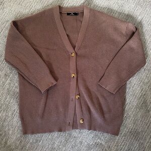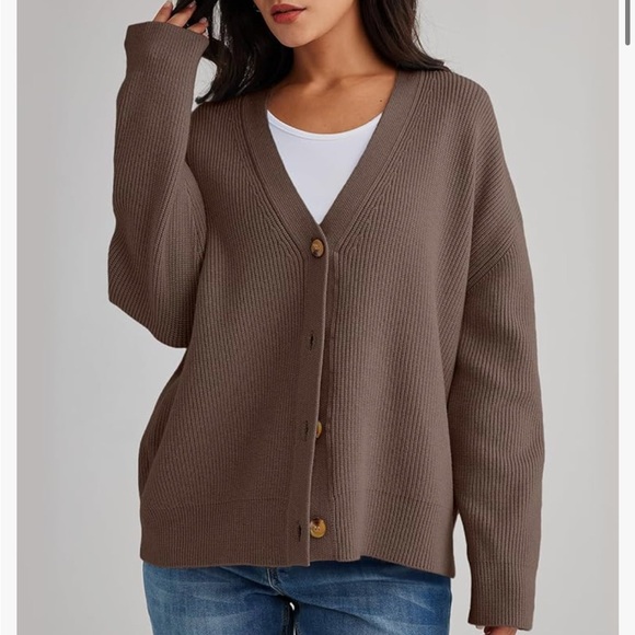 This brown cardigan features a relaxed fit and a ribbed knit texture, making it a versatile layering piece for any wardrobe.