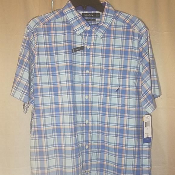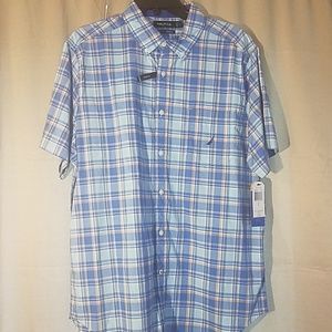 Nautica Button up Shirt. Excellent Condition size L . Plaid blue