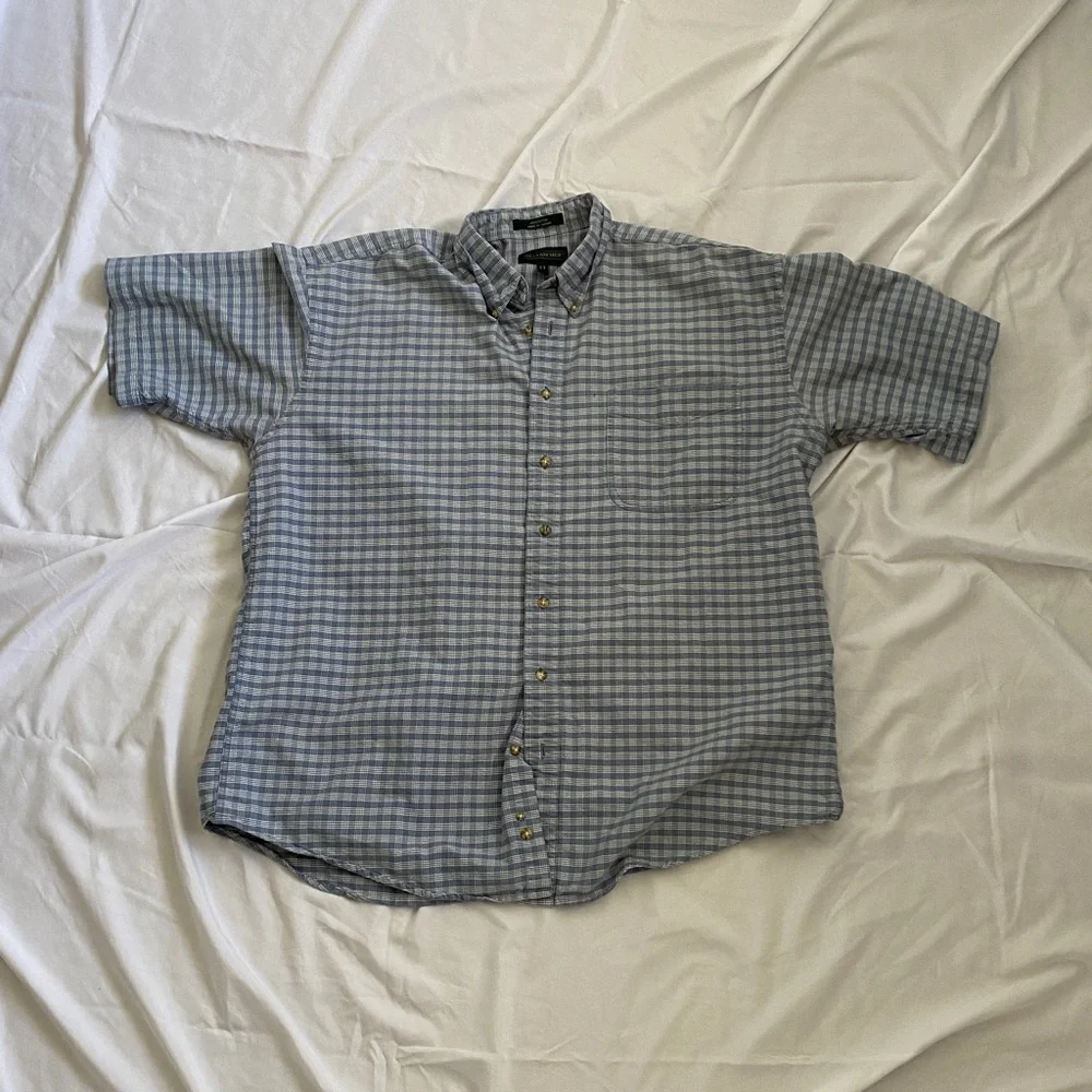 Nice dress shirt, nice pattern and color, fit is a bit boxy