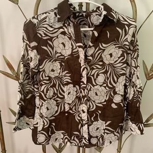 Ann Taylor button up - size S - brown and white floral print - 3/4 sleeve hem