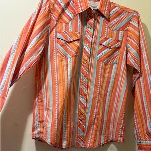 Add a pop of color to your wardrobe with this vibrant button-down shirt. Never worn, bought for a show shirt and it was too small