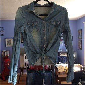 Long Sleeve Denim Button Up Crop Top Size: Medium Brand: Charlotte Russe