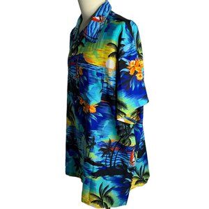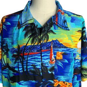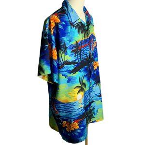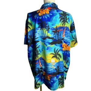 Button Up Hawaiian Camp Shirt 3XL Blue Floral Sunset Beach Short Sleeve Pocket