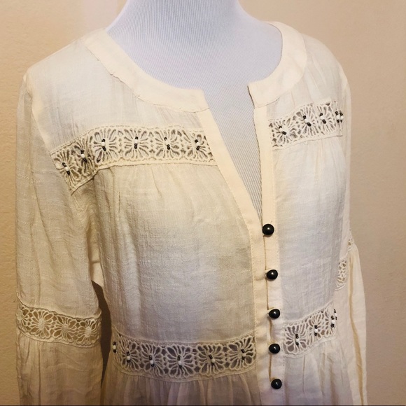 Button up peasant top with lace insets at the sleeve and bust ❤️