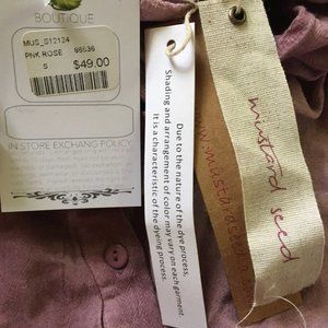 This gorgeous summer dress is beautiful AND comfortable! It has an interesting and unique color that resembles a vintage pink/purple vibe. Try wearing this beauty out with a pair of tan wedges or sandals. Pairing a t shirt underneath is another way you can wear this dress for a whole new look. It has a tie front and buttons up all the way. Size small. Brand new with tags.