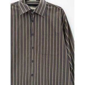 Button Up Shirt Men Size L Striped Non Iron 90s Retro Office Modern Earthy Prep
