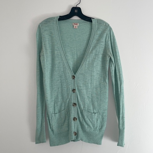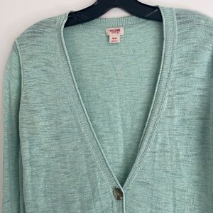 Blue/green button up sweater. In great condition!