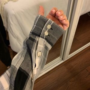 This is a super soft button up, flannel type top from Mossimo at Target. You can roll up the sleeves or leave them down. Super versatile!