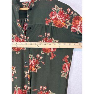 Button Up Tunic Dress Womens Small Floral Olive Green Stillwater