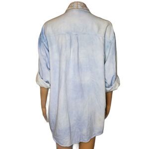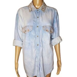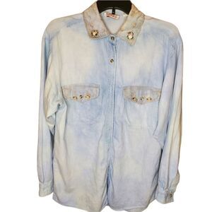 Vintage Denim Republic medium weight denim,hand embroidery retro cotton demin oversize button down shirt