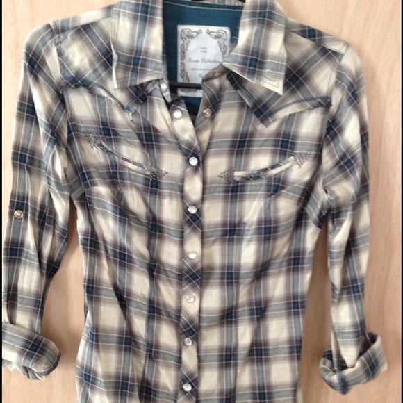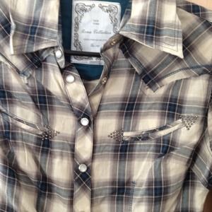 Cute button down with rhinestones on front pockets.