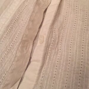 A light weight cotton white button down. Would look perfect under a sweater with boots. Or as a laid back office look.