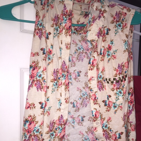 Button down shirt with stones on right pocket