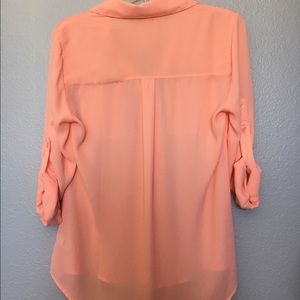 Peach/coral color. Button down. Roll up sleeves. Collard. Unworn.