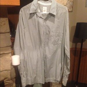 Green and white button down