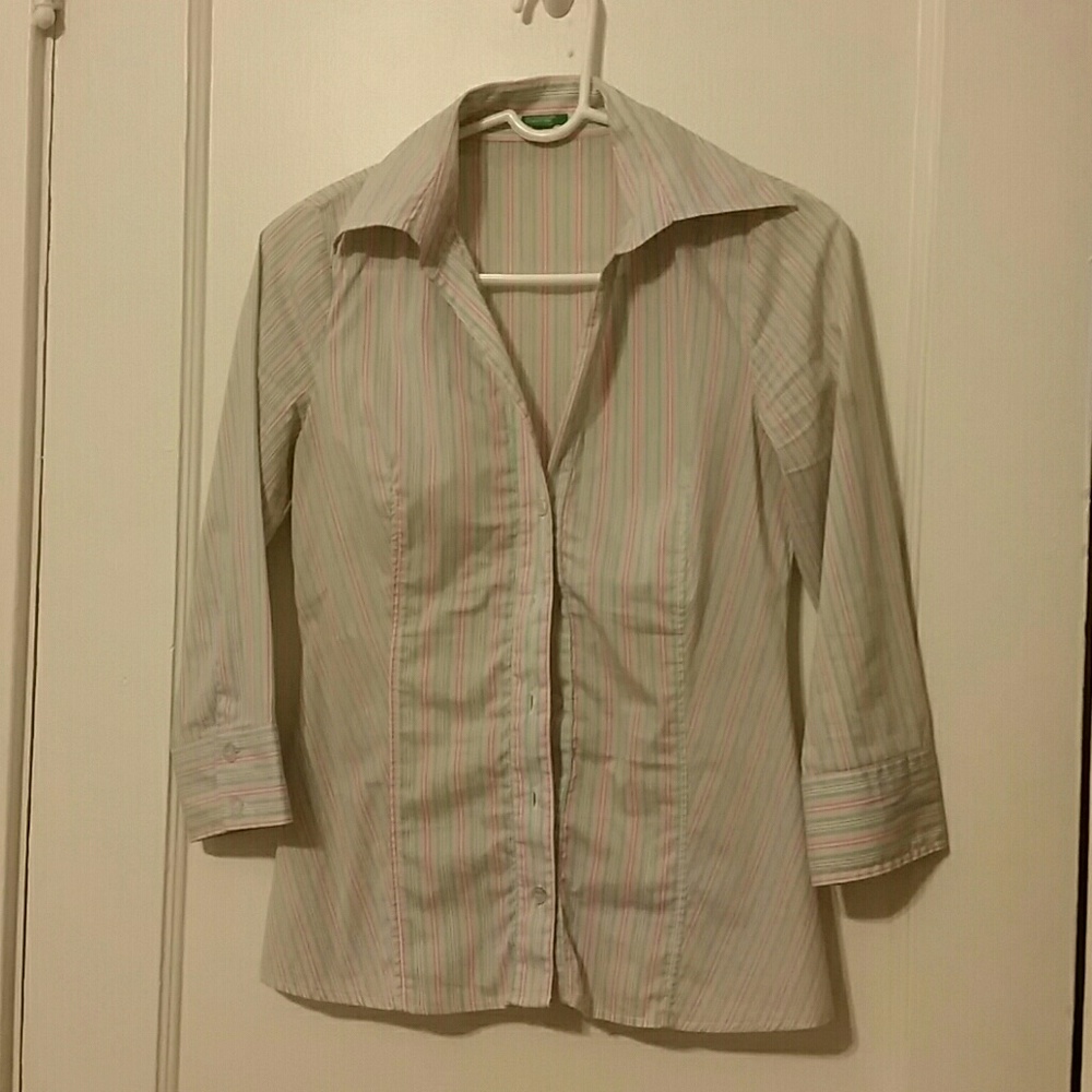Pinstriped, pink, white and green.