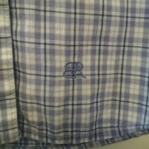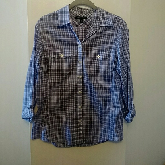 Purple plaid soft wash button down top, gently worn, 2 small bleach spots. See pictures above
