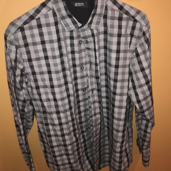Gray and black button down either casual or fancy it’s a small but fits a medium
