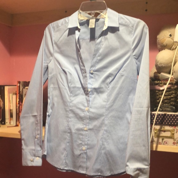 Cute light blue button down with white stripes
