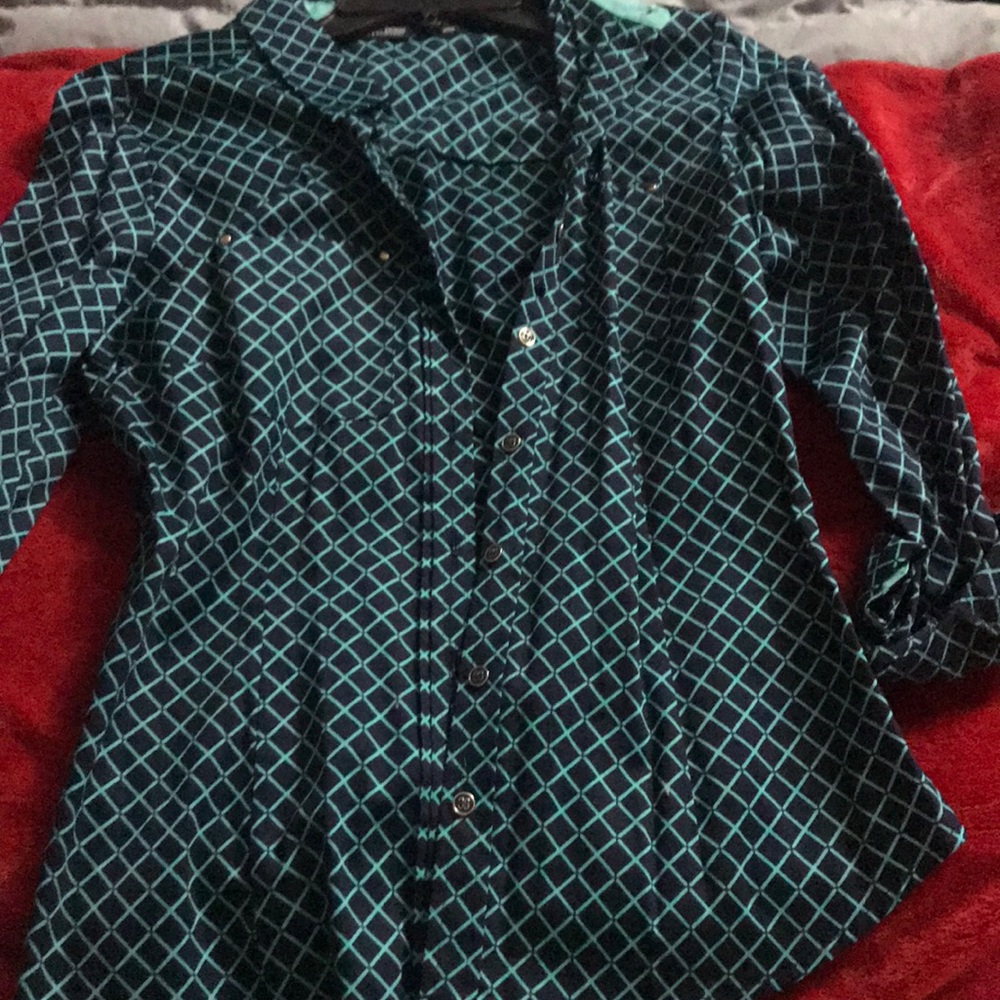 Blue and black button down