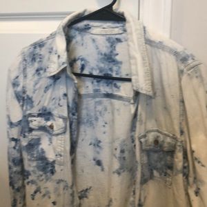 Splattered button down. Has the appearance of denim, but is lightweight. Size M