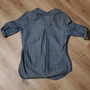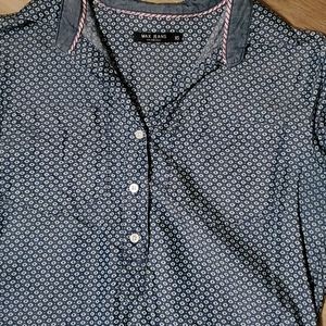Max jeans quarter button down. Chambray with white detail pattern.. Some discoloration in the armpits (pictured) size xsmall.
