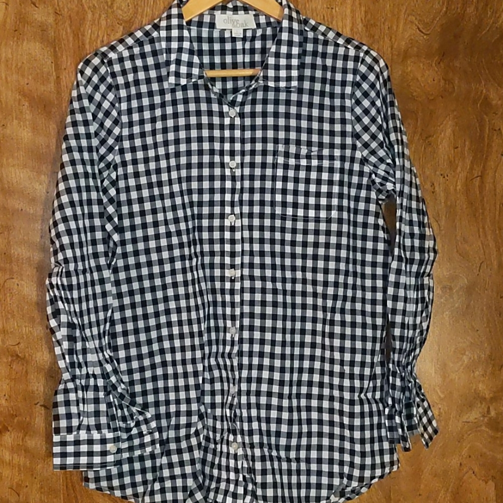 Navy and white cotton button down with a pocket. Super cute and comfortable!