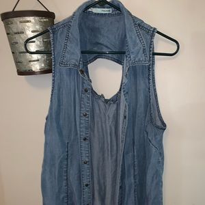 Button down, can be worn button or unbuttoned with a cute tank under it or even over a dress!