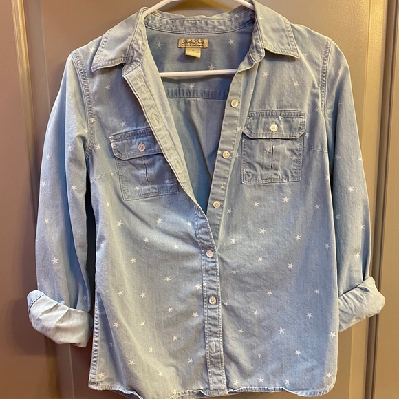 Denim button down with white stars.