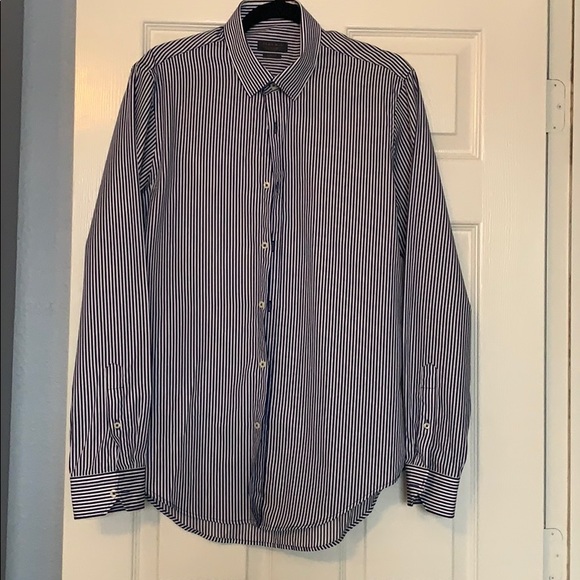 Navy blue and white casual button down.