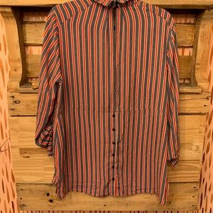 Red black and white striped button down