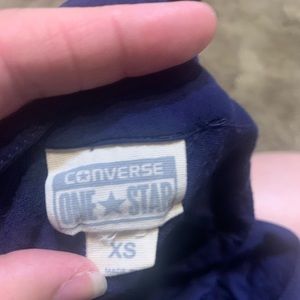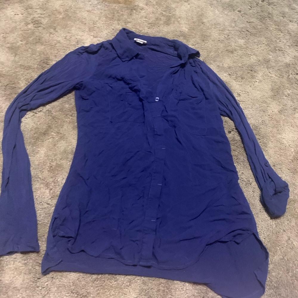 Soft cotton like material on arms and back and arms can roll sleeves up some as shown on one side. Front is like a more dressy blouse feel. Worn some