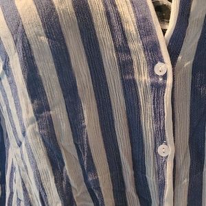 Blue and white stripped button down shirt. Very light weight. Bottom can easily be tied up