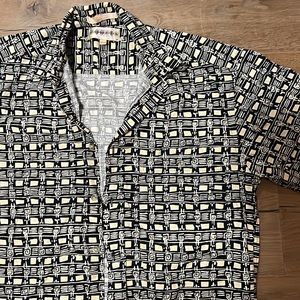 Vintage Mens button down size small, true to size. Super fun! Fully button down and has a pocket in the front.