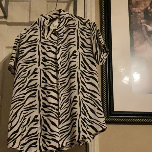 A zebra print button down