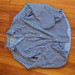 blue and white button down. puffy sleeve. size medium