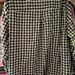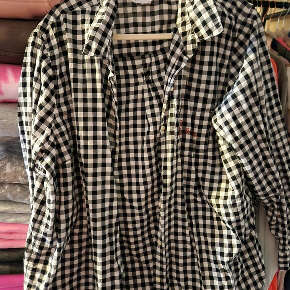 Black and white button down. "Love" embroidered on the pocket.