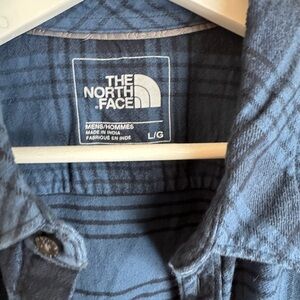 Men’s North Face button down shirt. Blue and black plaid. Men’s size large. EUC