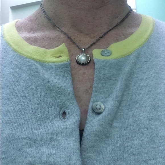Beautiful light heather grey with yellow trim, cotton cardigan. Never been worn. (New without tags)