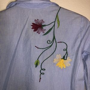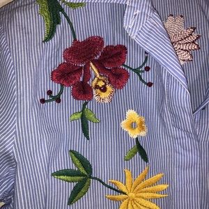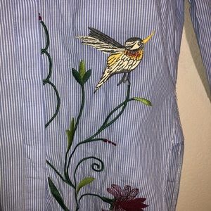 Super cute embroidery shirt with flowers and bird, gently used, priced to sell.