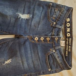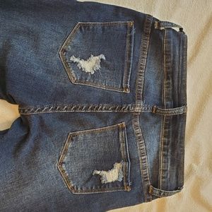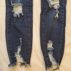 These skinny, stretchy, ripped jeans come a little above the ankles and have raw edges. Mid rise and perfect with a crop top and some heel. Also brand new