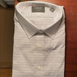 32-33 neck 16.5. Traditional fit. Wrinkle free. Grey check.