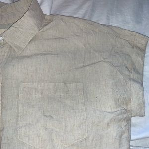 Créam button down top with bow tie in the front. Never worn before , New. Light weight summer top.