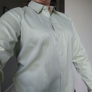 Beautiful sage and silver crossweave pattern makes this a unique and stunning blouse. Perfect for the office.